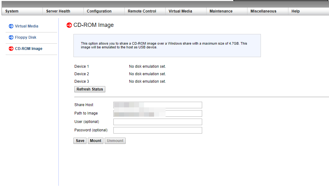 У меня iso образы ОС хранятся на сервере Samba в той же подсети что и интерфейсы IPMI серверов. Я указываю адрес сервера Samba, путь к образу установочному ISO с ОС, после чего монтирую ISO образ и приступаю к установке операционной системы.