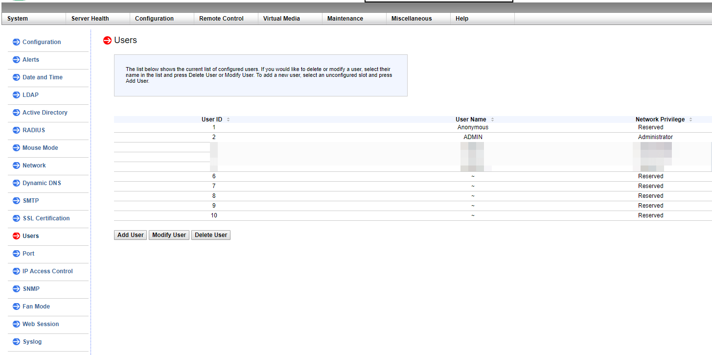 При покупке нового сервера, в IPMI уже создан пользователь ADMIN