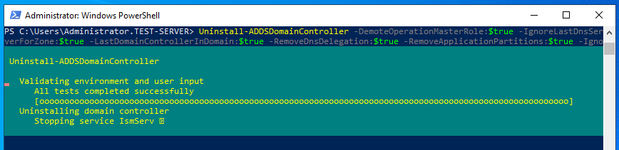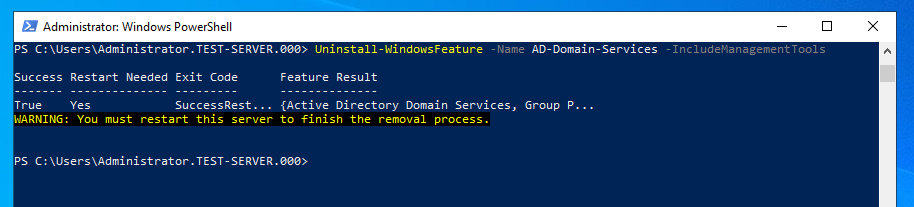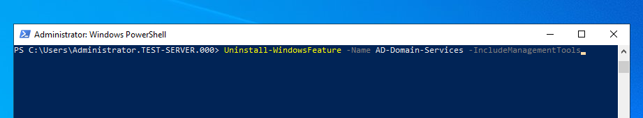 Uninstall-WindowsFeature -Name AD-Domain-Services -IncludeManagementTools Uninstall-WindowsFeature -Name DNS -IncludeManagementTools