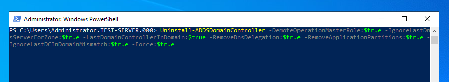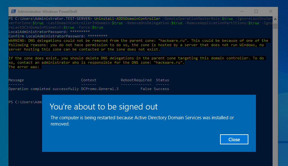 Понижение и удаление роли Active Directory domain controller с помощью PowerShell