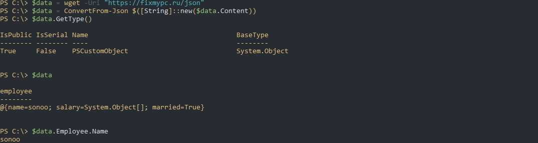 По умолчанию мы не можем работать с JSON объектами. Они будут восприниматься как строки пока мы не конвертируем объект в PSCustomObject. Это делается так: