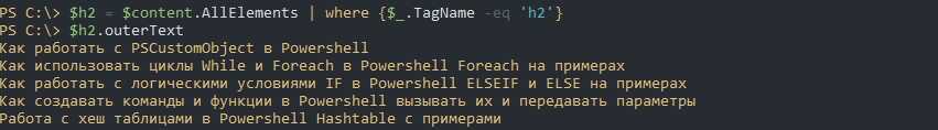 Парсинг, то есть возможность собирать информацию с сайтов, в Powershell реализована достаточно просто. Если мы посмотрим какие свойства имеет объект команды Invoke-WebRequest, сможем увидеть теги: