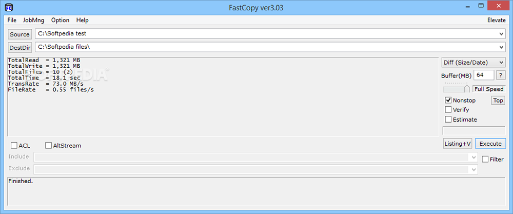 FastCopy использует механизм копирования, который отличается от Explorer. Улита считывает большие фрагменты вместо маленьких. Соответственно программа работает намного быстрее и практически не нагружает систему. FastCopy позволяет определять скорость копирования и размер буфера.