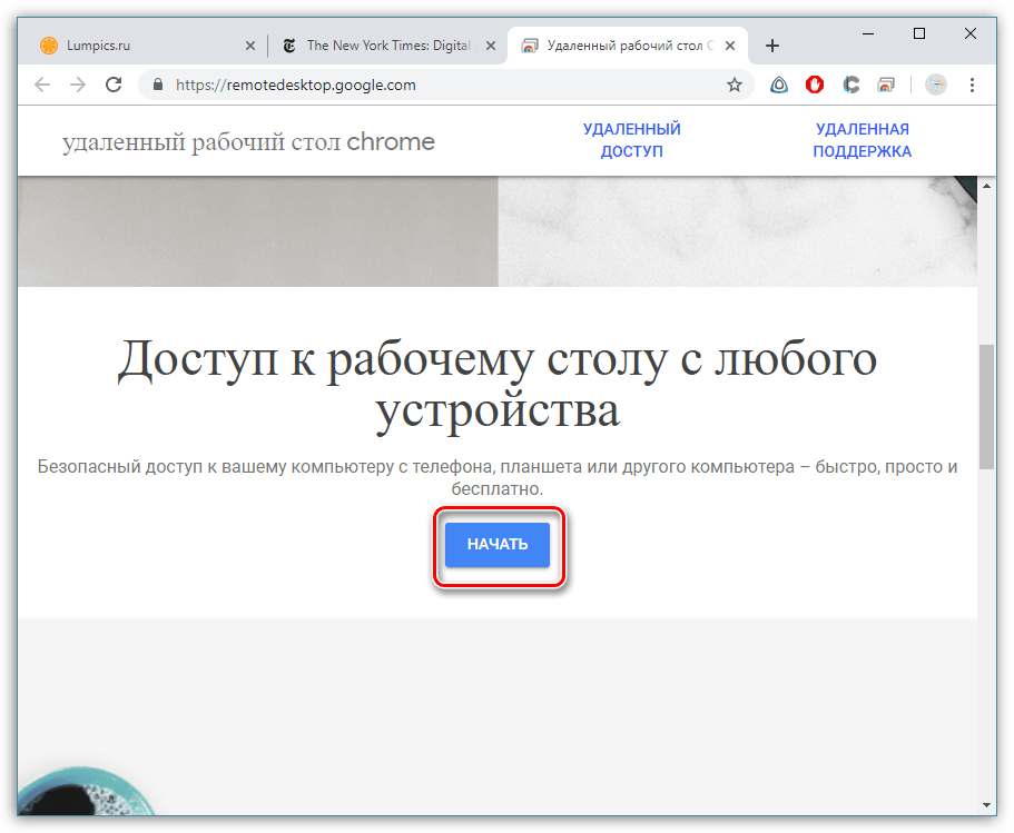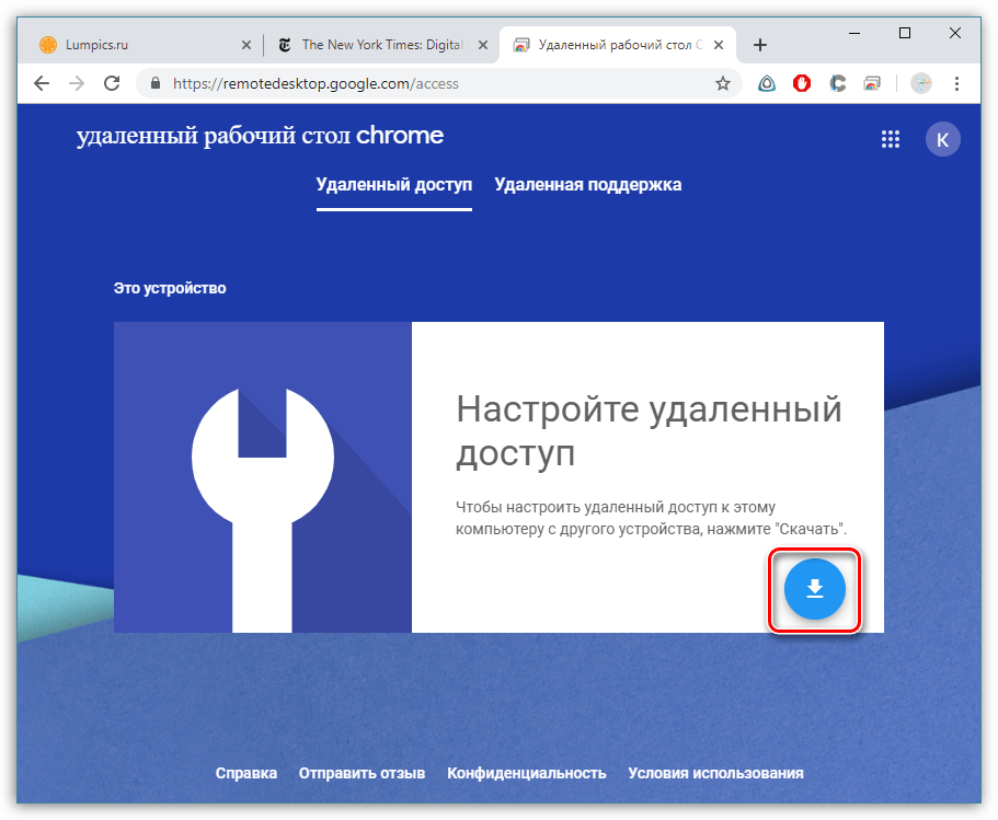 - Нажать кнопку загрузки расширения Chrome Remote Desktop.