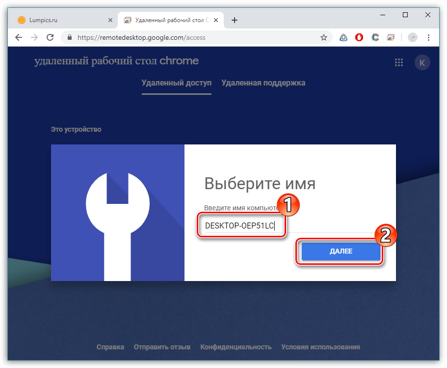 Завершите установку программы на компьютер. После браузер предложит задать имя для компьютера. При необходимости, измените предложенный вариант и переходите далее.
