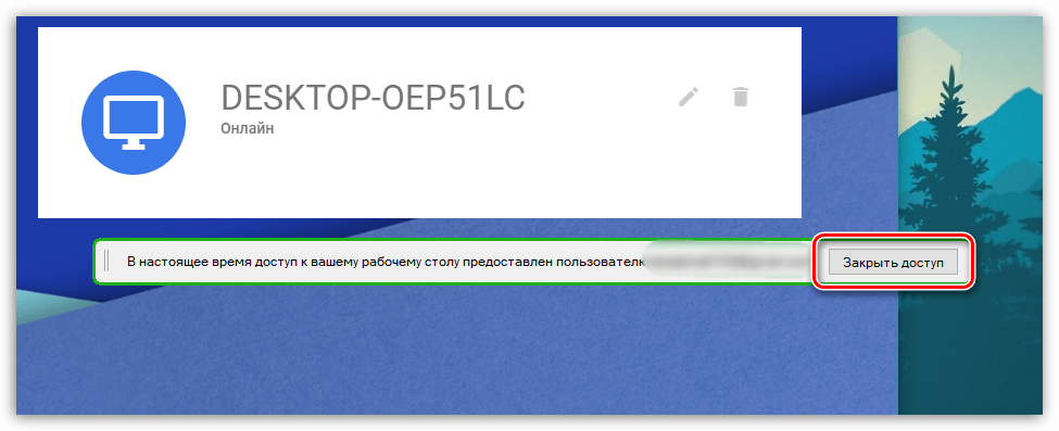 Завершить работу с Chrome Remote Desktop можно двумя способами: либо выйти из приложения, после чего соединение будет разорвано, либо на самом удаленном компьютере нажать кнопку «Закрыть доступ».