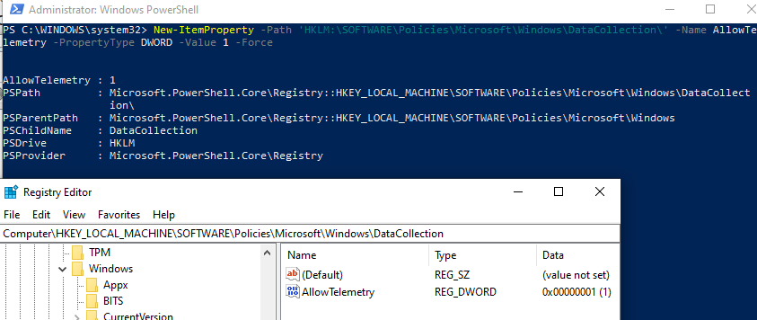 Вы можете изменить этот параметр с помощью редактора реестра (regedit.exe) или с помощью PowerShell-командлета New-ItemProperty: