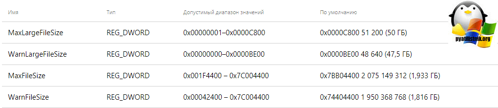 - Файлы в формате Юникод – MaxLargeFileSize и WarnLargeFileSize
