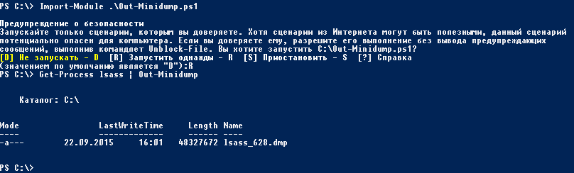 Видим создался файл lsass_628.dmp это и есть наш minidump.