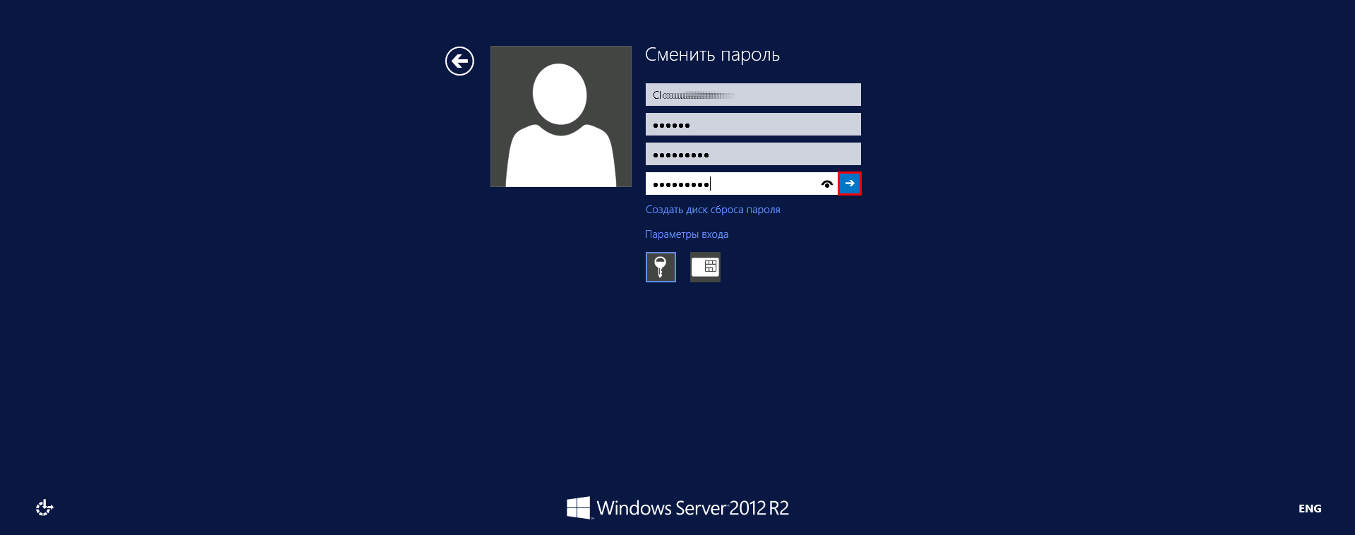 Заполняем поля со старым паролем, указываем новый пароль и его подтверждение. Кликаем по иконке стрелки.