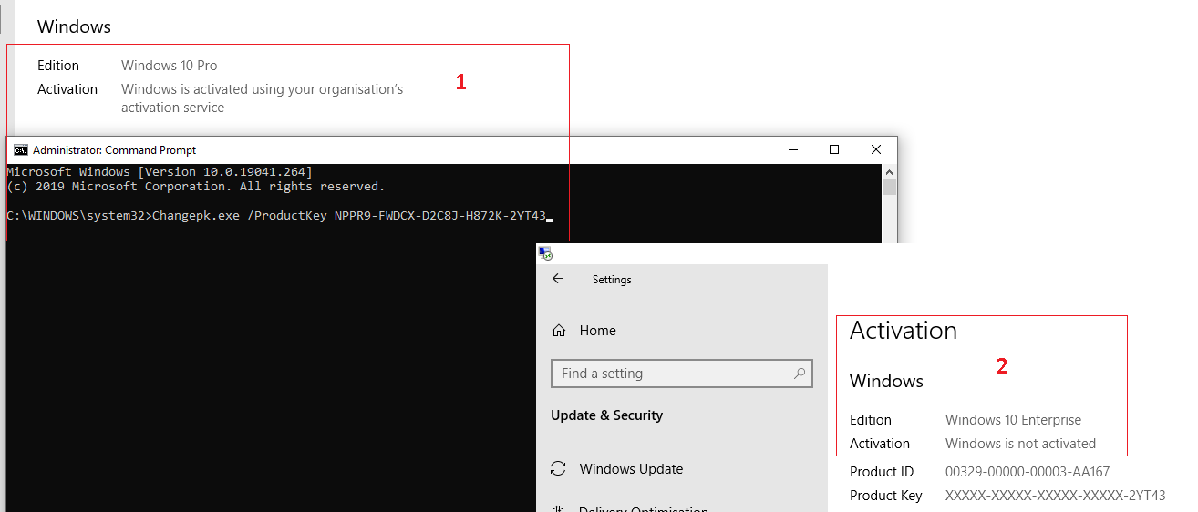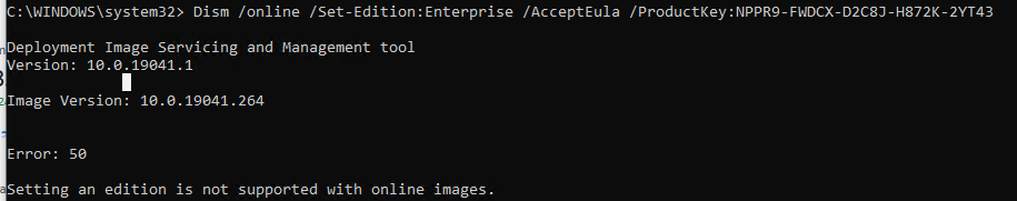 DISM.exe /online /Set-Edition:Enterprise /AcceptEula /ProductKey:NPPR9-FWDCX-D2C8J-H872K-2YT43