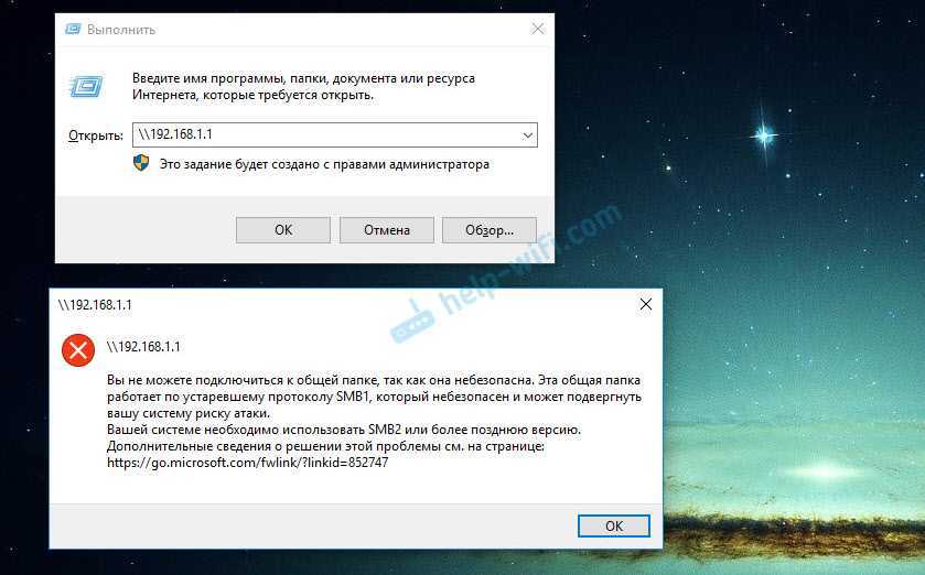 «Вы не можете подключиться к общей папке, так как она небезопасна. Эта общая папка работает по устаревшему протоколу SMB1, который не безопасен и может подвергнуть вашу систему риску атаки.»