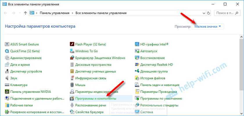 Переключитесь на «Мелкие значки» и откройте «Программы и компоненты».