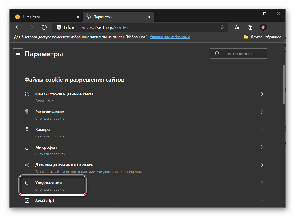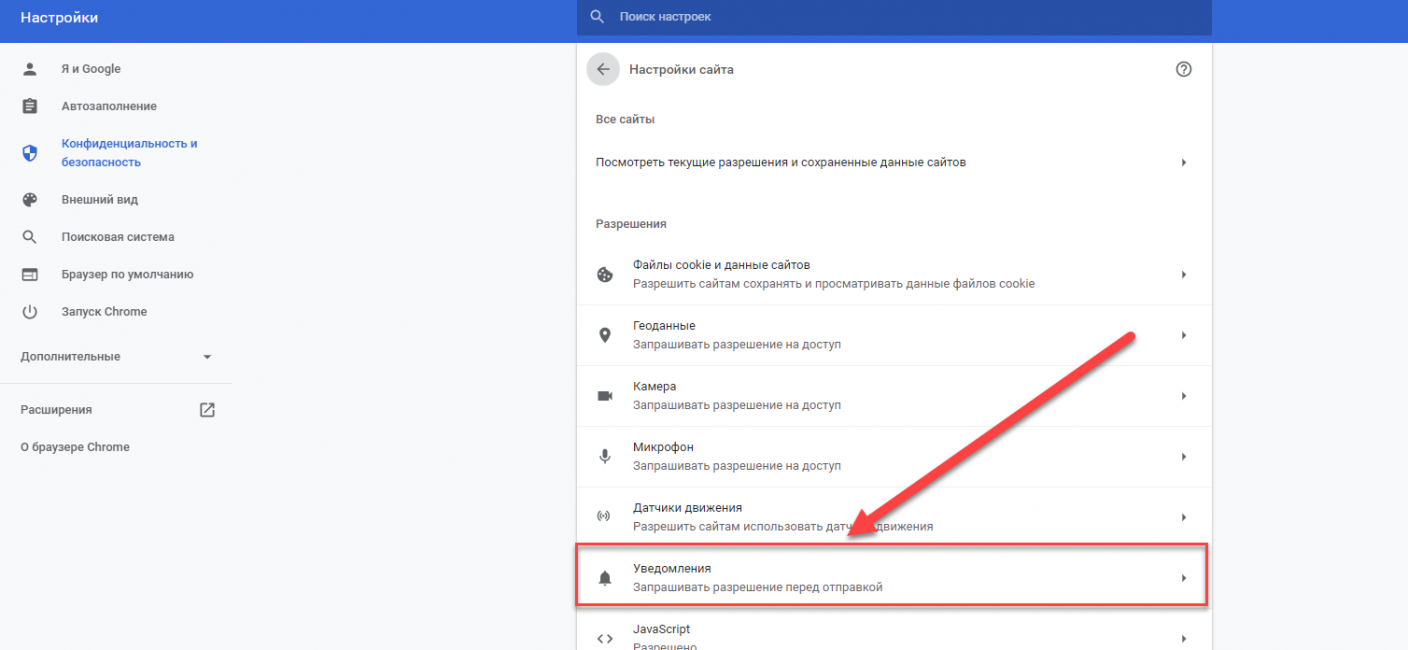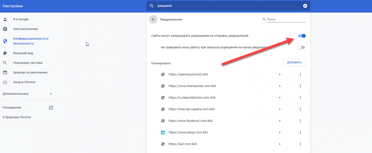 Когда нужно заблокировать только уведомления с всплывающими окнами, достаточно выполнить следующие действия:
