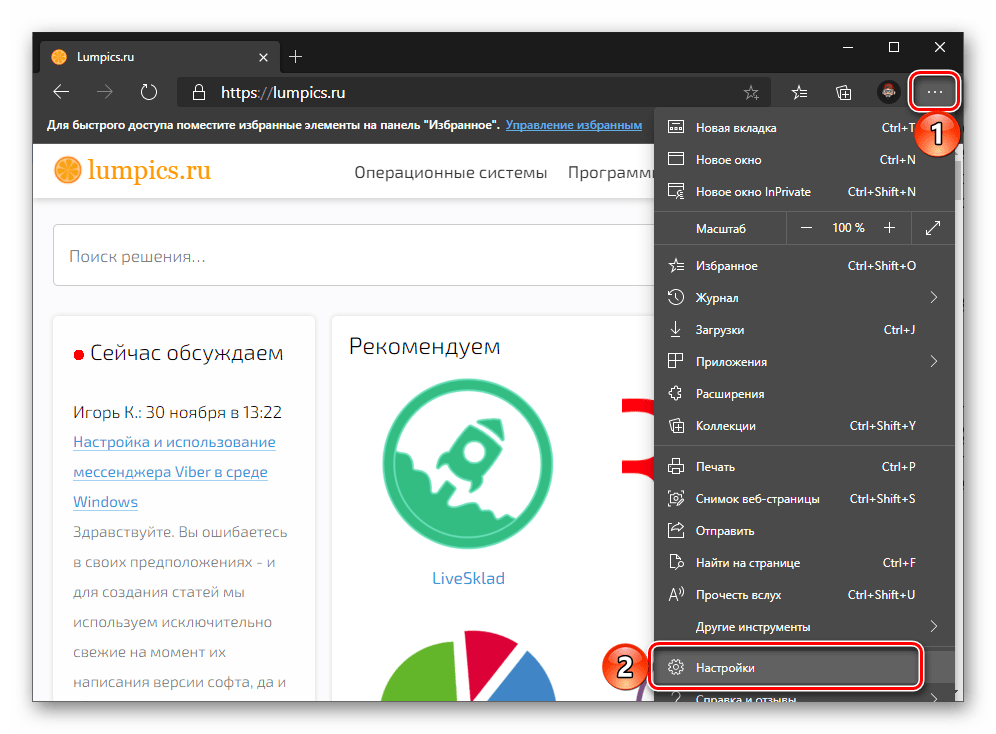 Зайдите в Настройки браузера, как в предыдущем варианте
