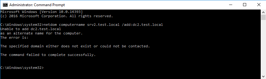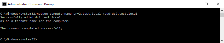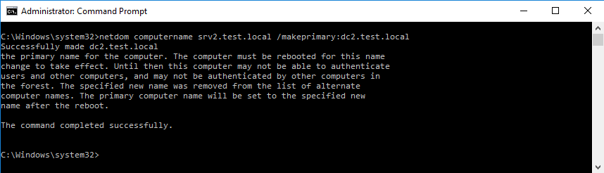 netdom computername srv2.test.local /makeprimary:dc2.test.local
