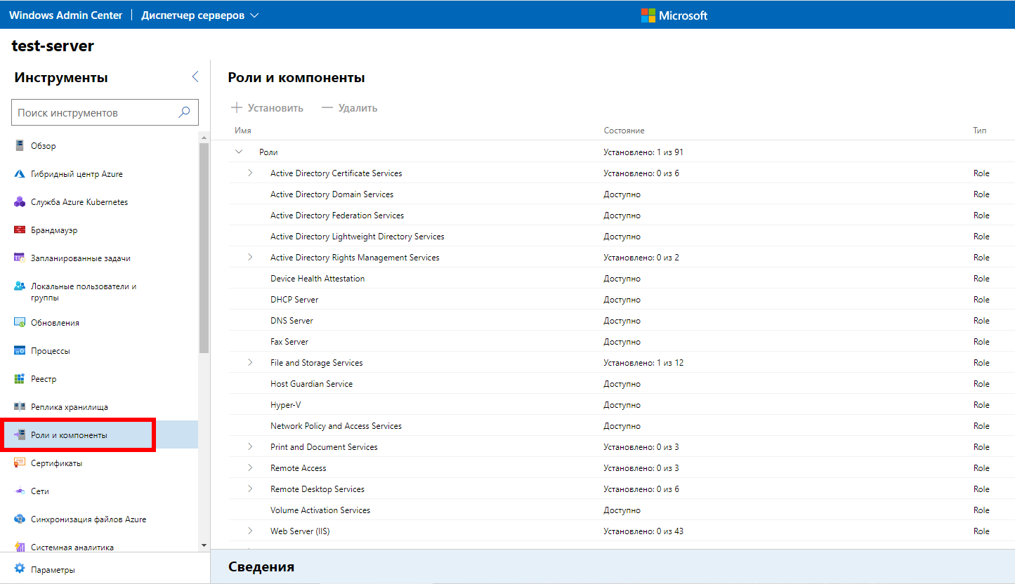 Здесь же, в Windows Admin Center, вы можете и удалить роли и компоненты.