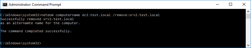 netdom computername dc2.test.local /remove:srv2.test.local