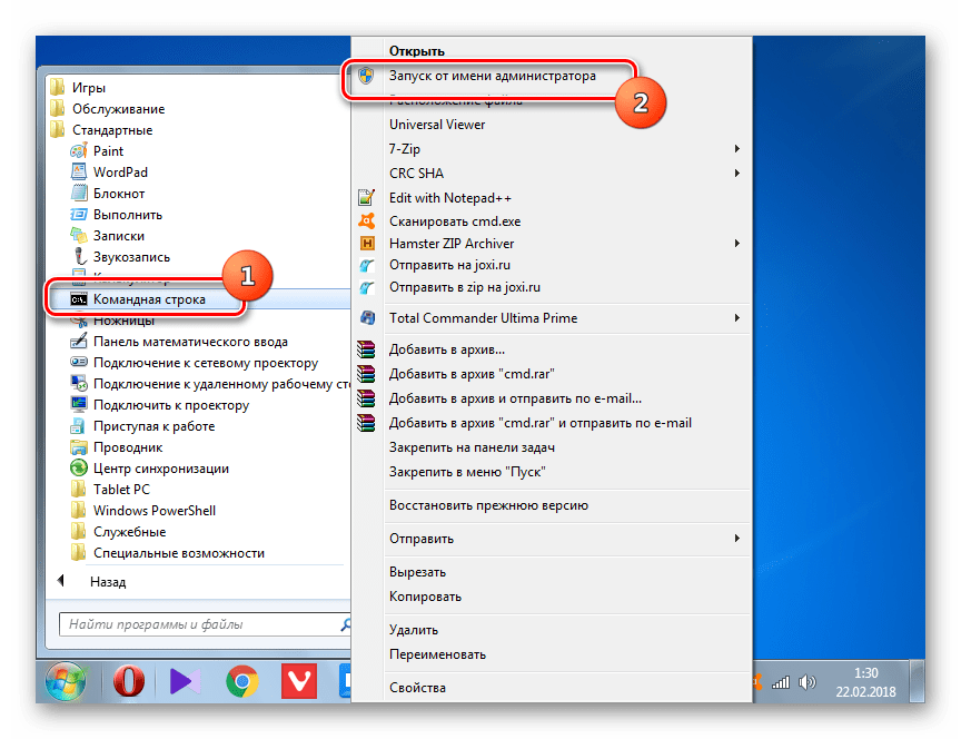 Среди перечня объектов отыщите название «Командная строка». Щелкайте по нему ПКМ и выбирайте вариант запуска от лица администратора.
