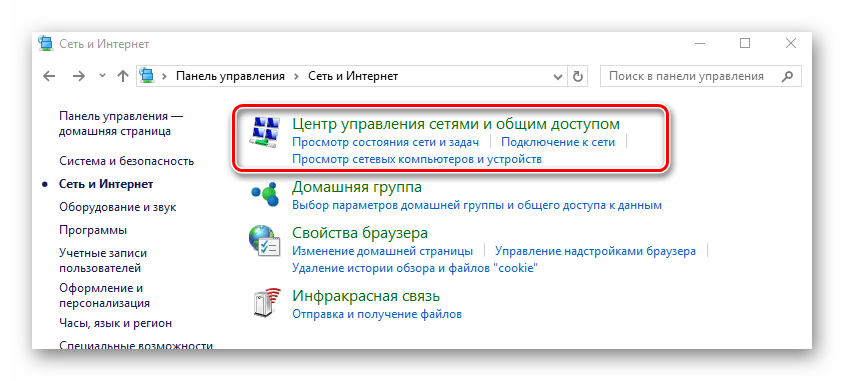 , находим там каталог, отвечающий за управления сетями и общим доступом.