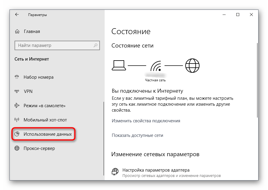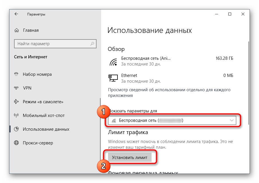 Иногда операционная система в автоматическом режиме устанавливает лимитные подключения, например, если тарифный план используемого интернета ограничен. Если Виндовс посчитает, что лимит вот-вот кончится, скачивание приложений будет запрещено. В случае, когда вы уверены в том, что эту опцию можно отключить или вообще не нуждаетесь в ней, выполните такие действия: