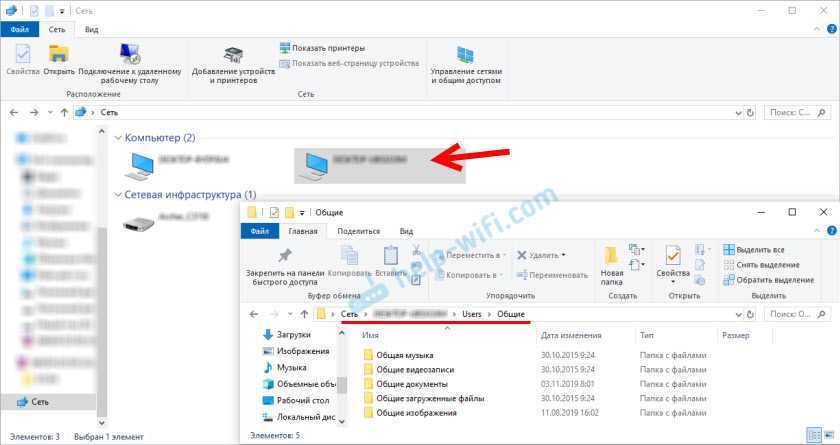 После настройки общего доступа мы можем получить доступ к общим папкам с других компьютеров, которые находятся в одной сети (подключены через один роутер или свитч).