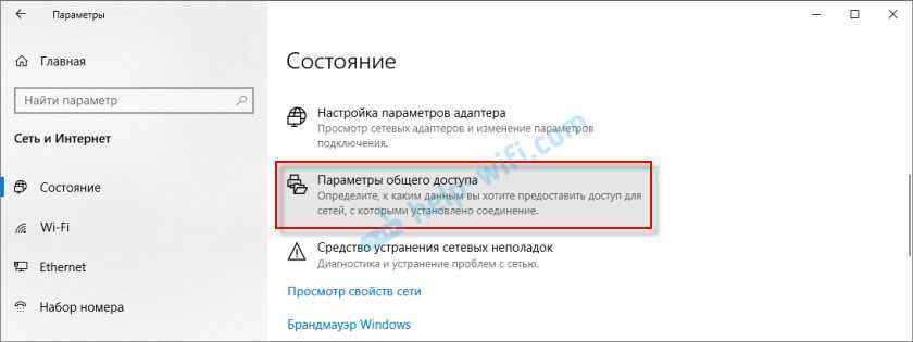 Настройка параметров общего доступа в Windows 10