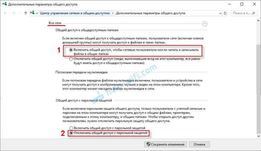 - Включить общий доступ, чтобы сетевые пользователи могли читать и записывать файлы в общих папках.