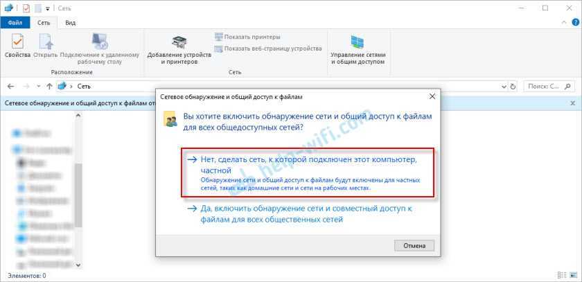 А если сети, к которой вы подключены присвоен статус «Общедоступные», то появится еще одно окно. Выберите следующий пункт: «Нет, сделать сеть, к которой подключен этот компьютер, частной».