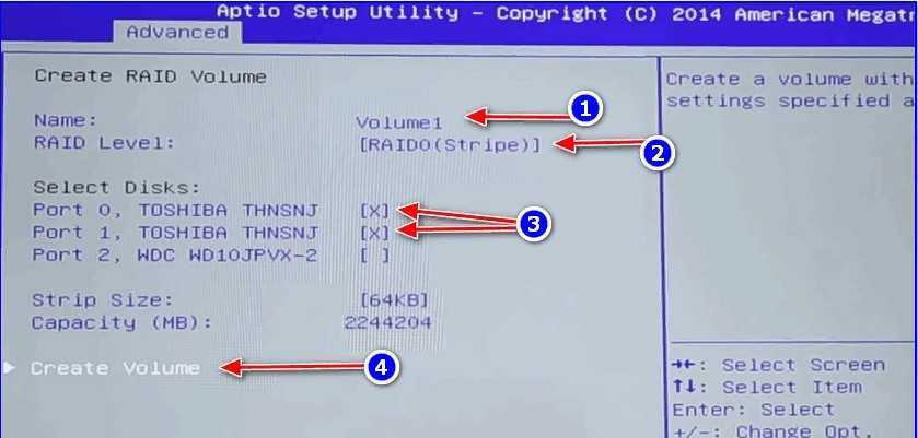 Выполняем настройку RAID 0-массива.