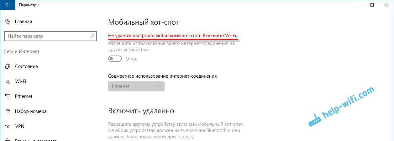 Ошибка: «Не удалось настроить мобильный хот-спот, поскольку у компьютера отсутствует подключение Ethernet, Wi-Fi или подключение к сотовой сети».