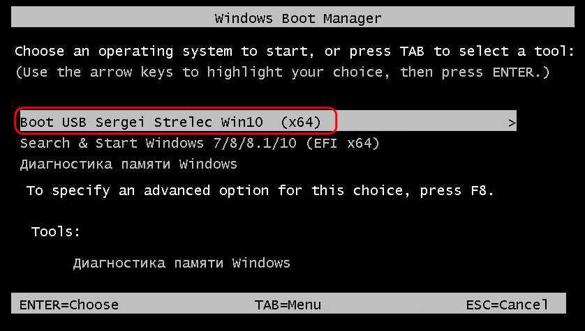 Для проверки накопителя я использовал относительно современный ноутбук с UEFI. Вызвав Boot Menu — ноутбук показал, что флешку видит (как и установленную на жестком диске Windows). Попробовал загрузиться с флешки.