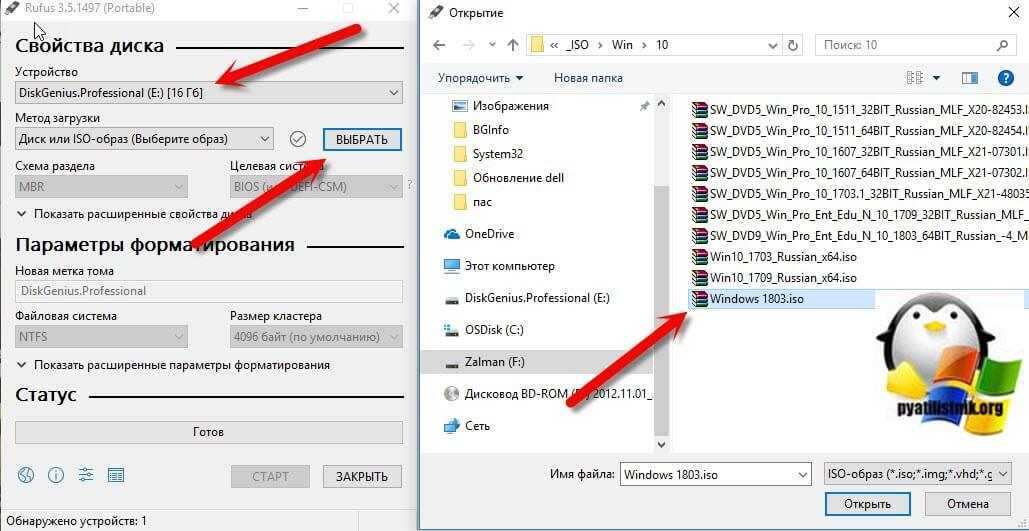И так создание загрузочной флешки Windows 10 в Rufus включает в себя рад действий: