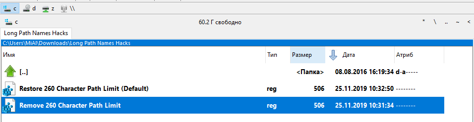 Эти хаки на самом деле являются просто ключом FileSystem, урезанным до значения LongPathsEnabled, которое мы описали выше, а затем экспортированным в файл .REG. Запуск хака «Remove 260 Character Path Limit.reg» устанавливает значение LongPathsEnabled равным 1. Запуск хака «Restore 260 Character Path Limit (Default).reg» устанавливает значение обратно в .