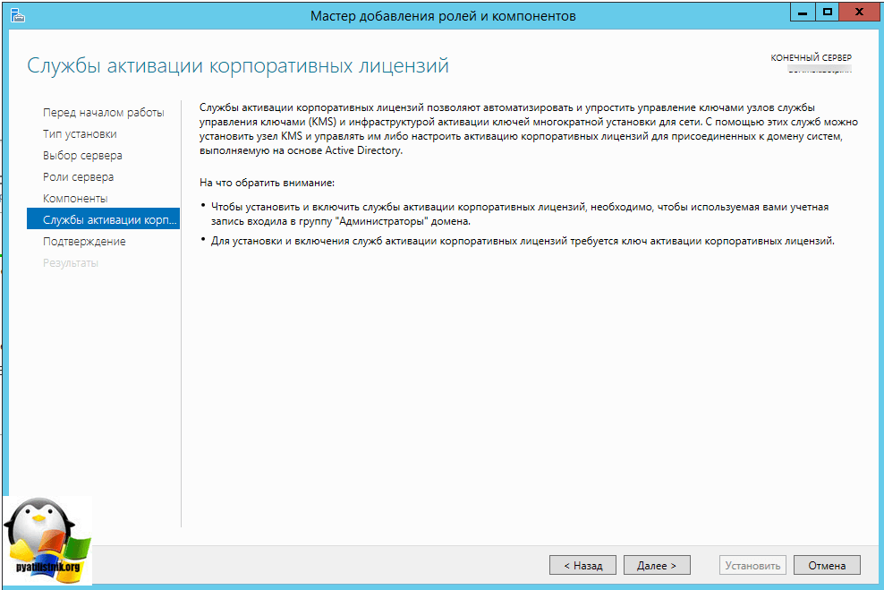 на следующем шаге вам подробнее расскажут про службу активации корпоративных лицензий, жмем далее.