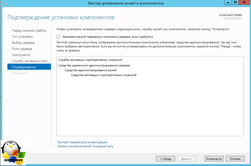 на следующем шаге находим роль Службы активации корпоративных лицензий (AD BA)