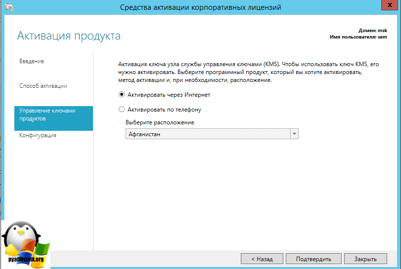 следующим шагом, будет подтверждение вашего KMS ключа, тут либо через интернет, либо по телефону.