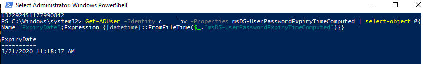 Таким образом мы получили время истечения срока действия пароля пользователя.