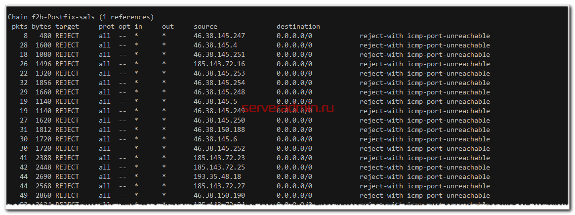 24327 раз данный фильтр распознал строки, попадающие под работу фильтра. Изначально я напрягся, когда прикинул, что именно такое количество ip адресов поедет в бан с помощью iptables. Это еще не критично большое количество, но все равно достаточно много. По одному добавлять такое количество адресов не стоит. Нужно использовать списки, например, .