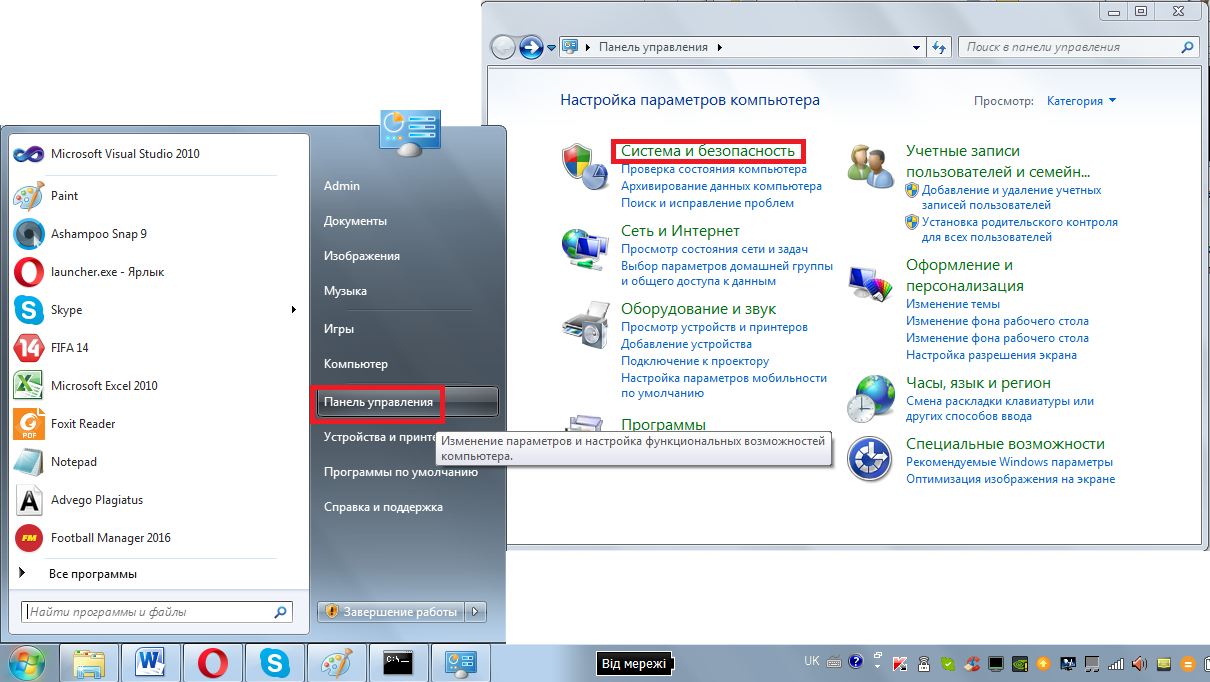 Рис. 5. Раздел «Система и безопасность» в панели управления
