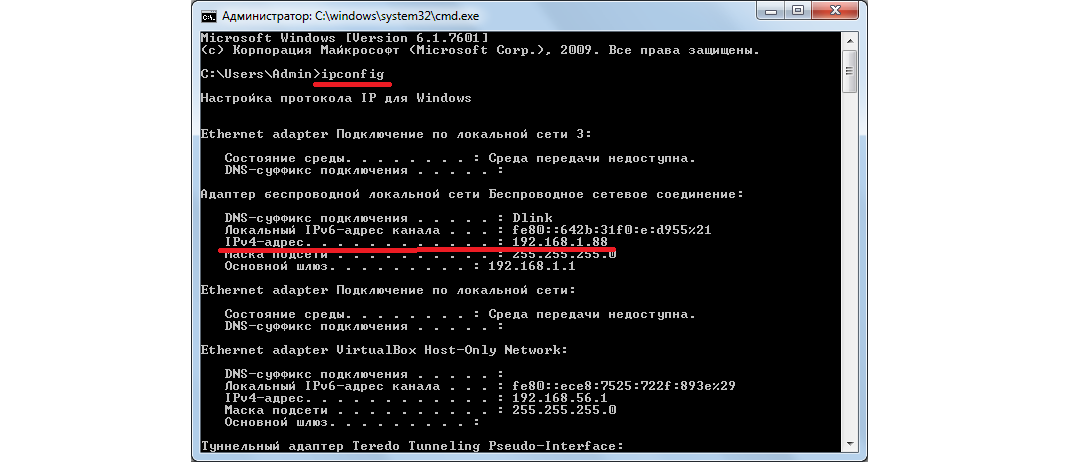 Как видим, в нашем примере IP-адрес 192.168.1.88.