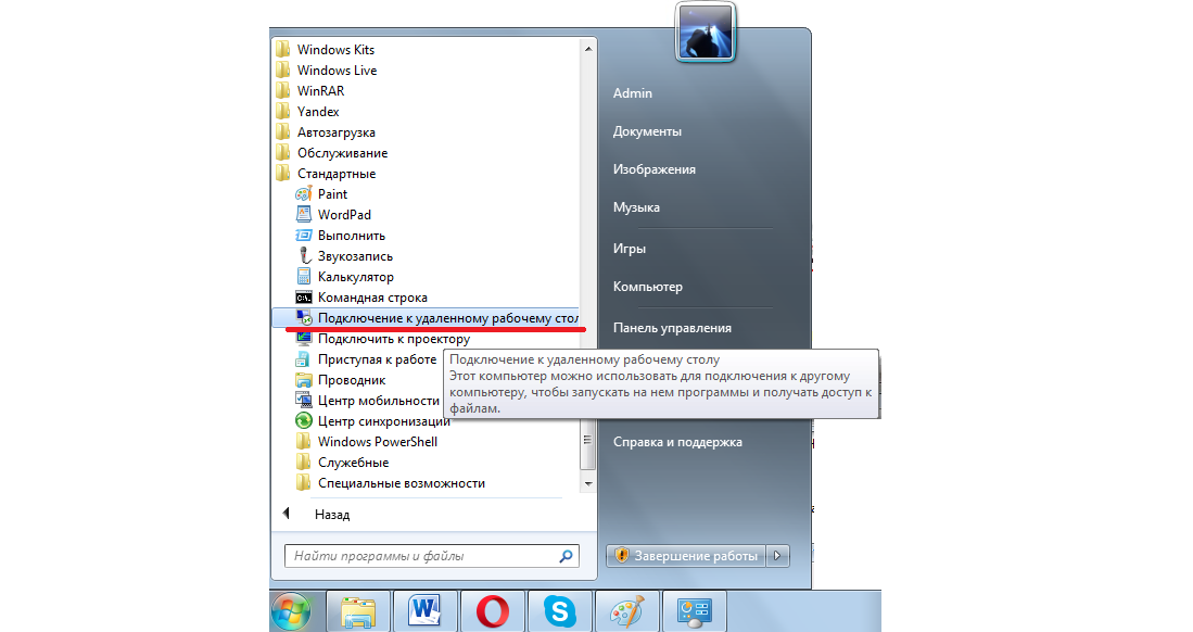Рис. 8. Инструмент для подключения к удаленному рабочему столу в меню «Пуск»