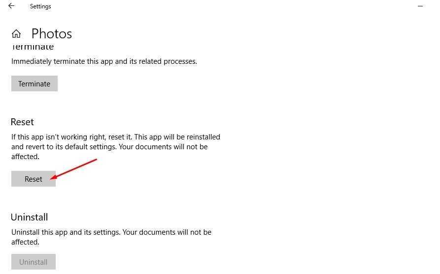 Вот как можно сбросить приложение «Фотографии» в Windows 10: