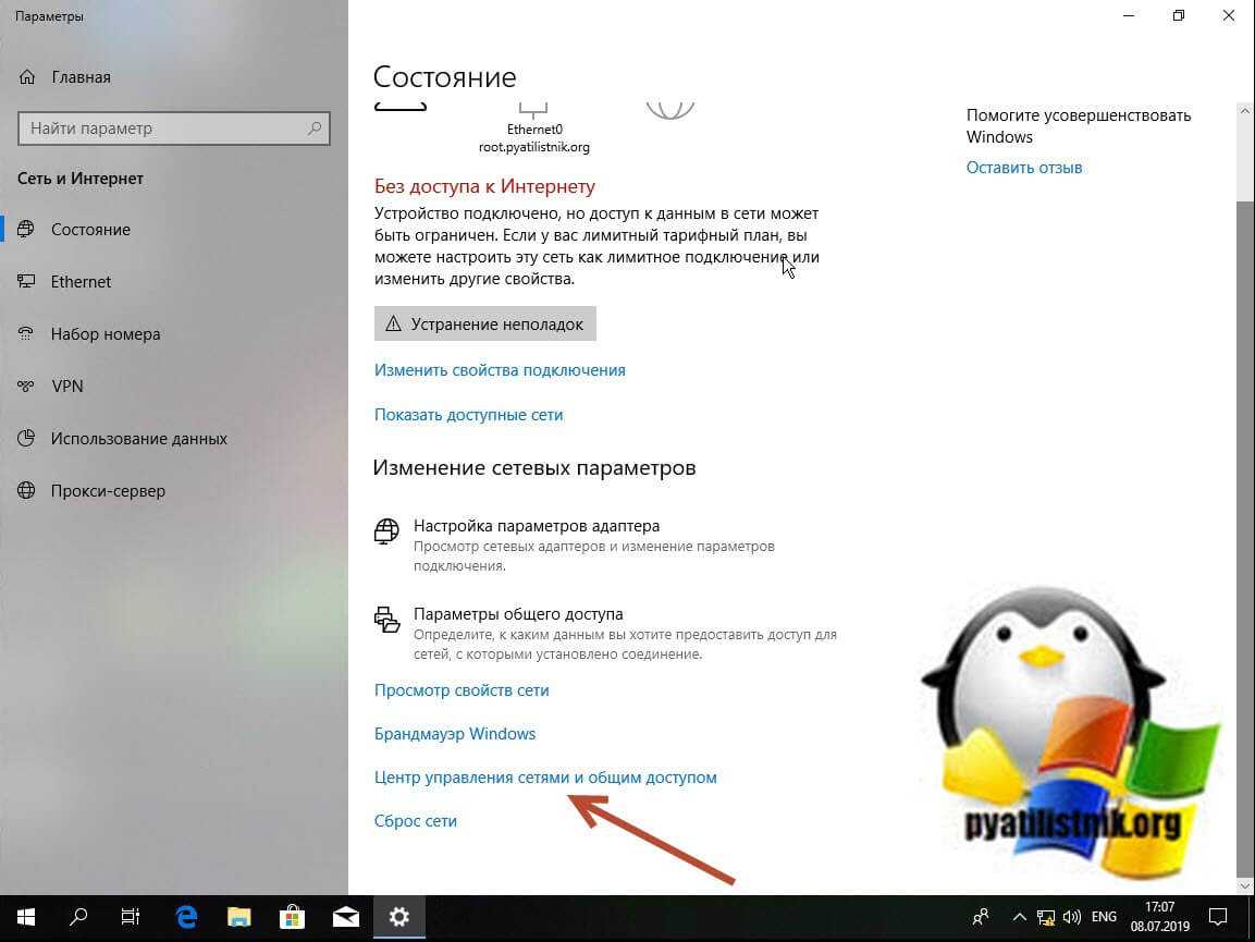 А если нажать «Центр управления сетями и общим доступом»