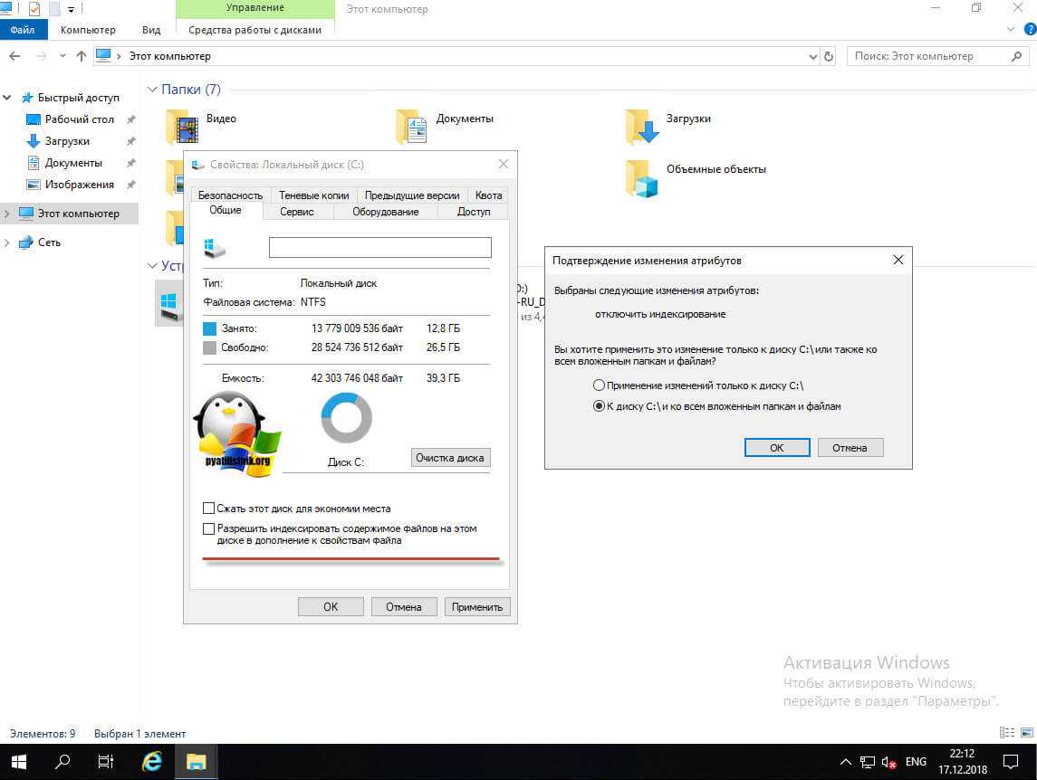 Службу индексации, для этого снимите галку «разрешить индексировать содержимое файлов на этом диске в дополнение к свойствам файла», нажмите применить, вас спросят к чему, оставьте «К диску C:\ и ко всем вложенным папкам и файлам»