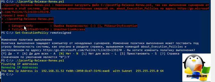 Так же у Microsoft есть скрипт PowerShell, который сделает запрос на освобождение и получение нового IP-адреса, но я сомневаюсь, что это удобно, в отличие от ipconfig в одну строчку.