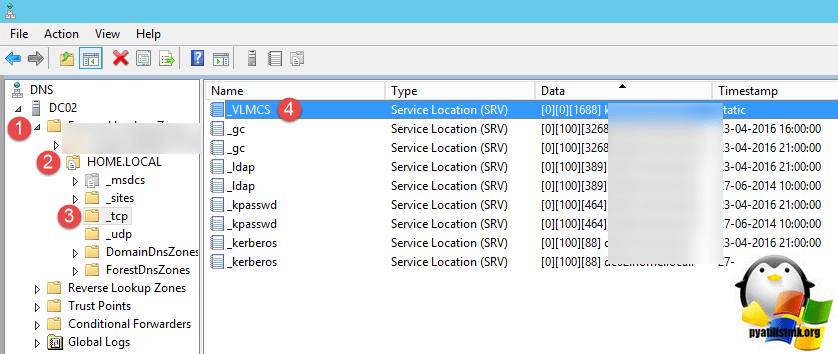 После того, как ключ получен, вы его с помощью специального скрипта должны его активировать. В результате чего у вас в DNS, появится новая запись формата SRV _VLMCS._TCP_название домена и отвечать она будет по порту 1688, именно на нем работает сервер KMS, для активации Office и Windows.