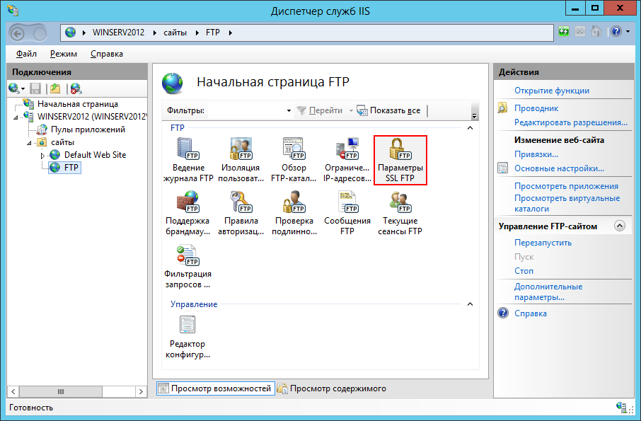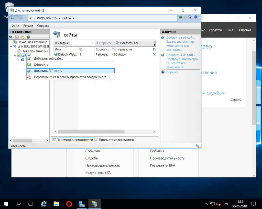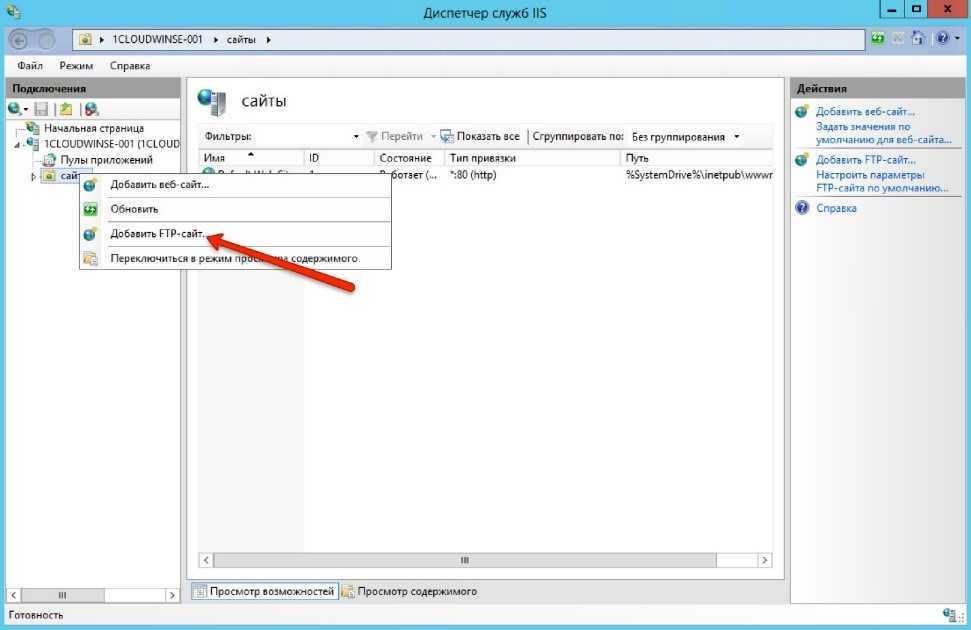 Настройка FTP сайта в Windows Server, предоставление прав пользователям
