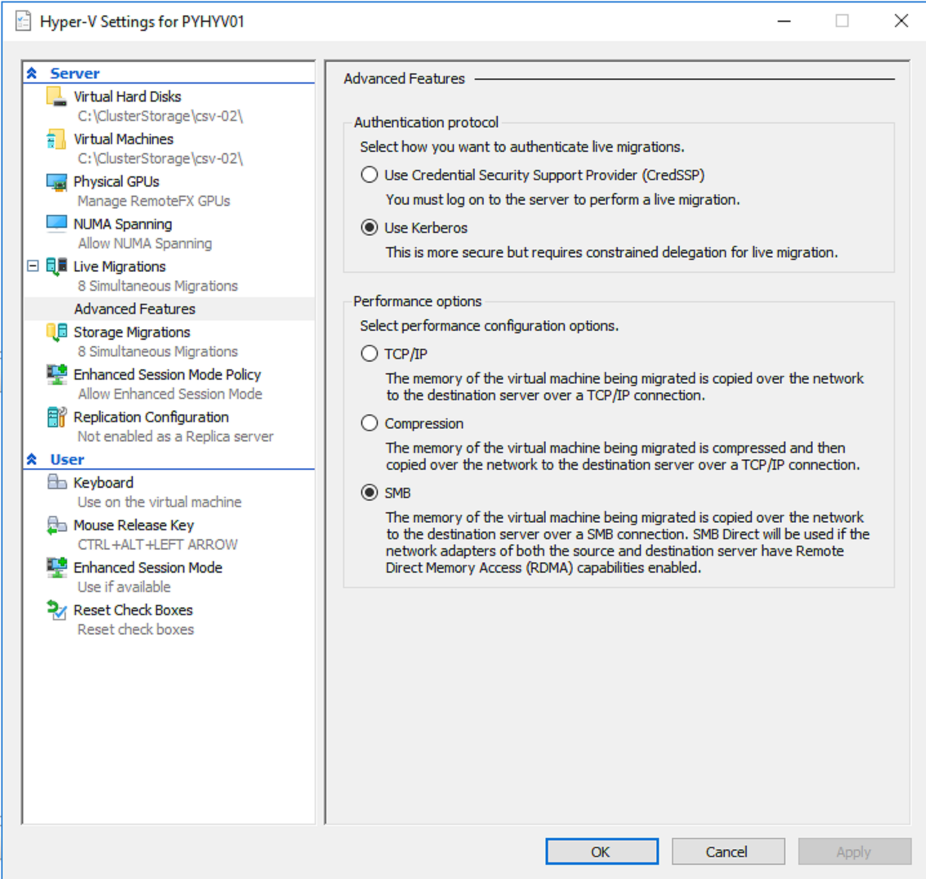 By default, Hyper-V hosts use CredSSP to authenticate with member of the cluster to run Live Migration. Microsoft chooses CredSSP by default because there is no further configuration to apply in order that Live Migration works. However, CredSSP has two main issues regarding Kerberos: