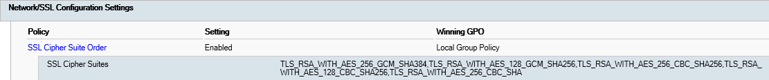 Используйте выход, чтобы определить GPO, который указывает SSL Cipher Suite Order, а затем удалить GPO. Или измените его, чтобы включить шифры, поддерживаемые https://sws.update.microsoft.com . Для Windows Server 2016 и Windows Server 2019 включим один из следующих шифров: - TLS_ECDHE_RSA_WITH_AES_256_GCM_SHA384
